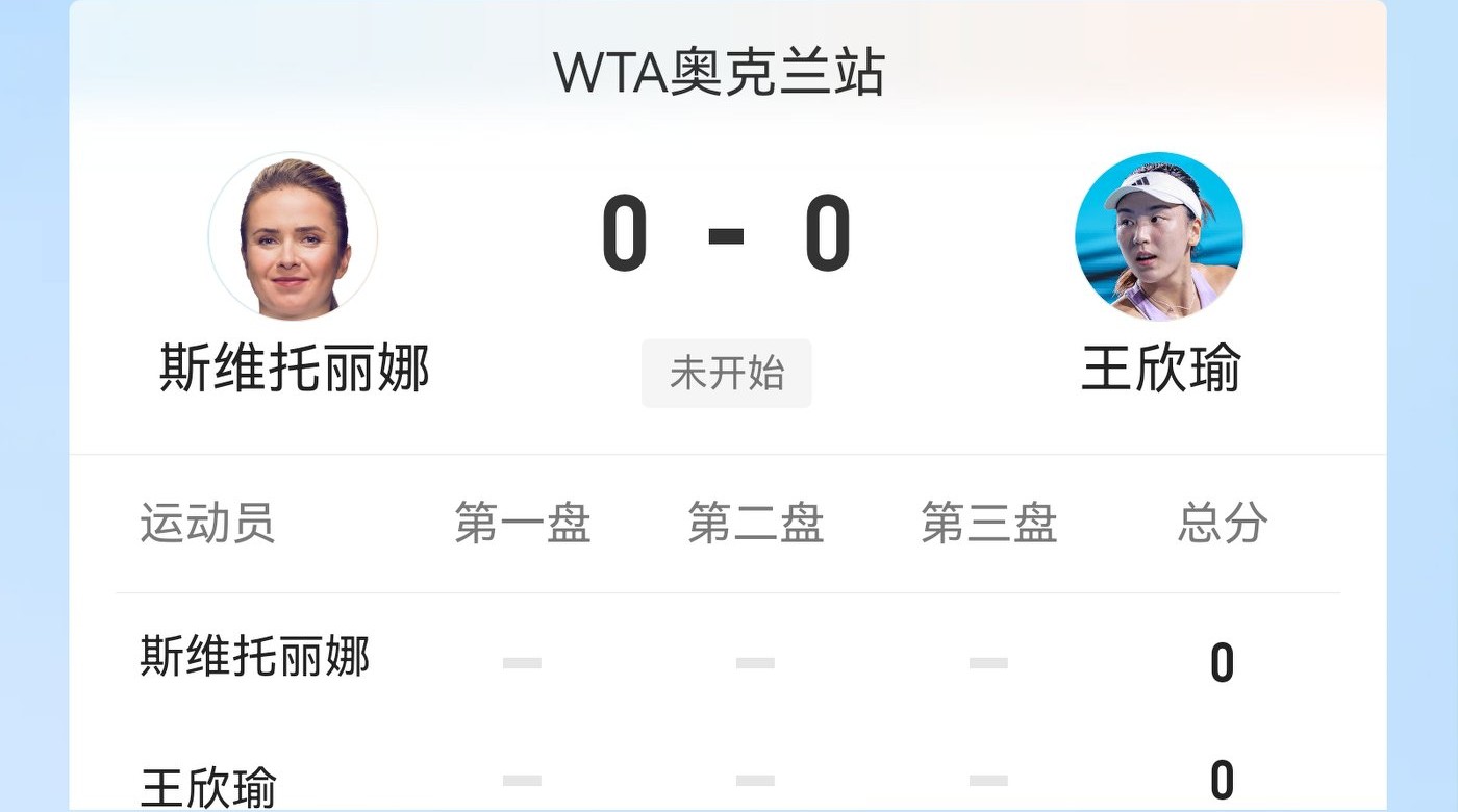 正在直播WTA250奧克蘭站決賽 王欣瑜對陣斯維托麗娜