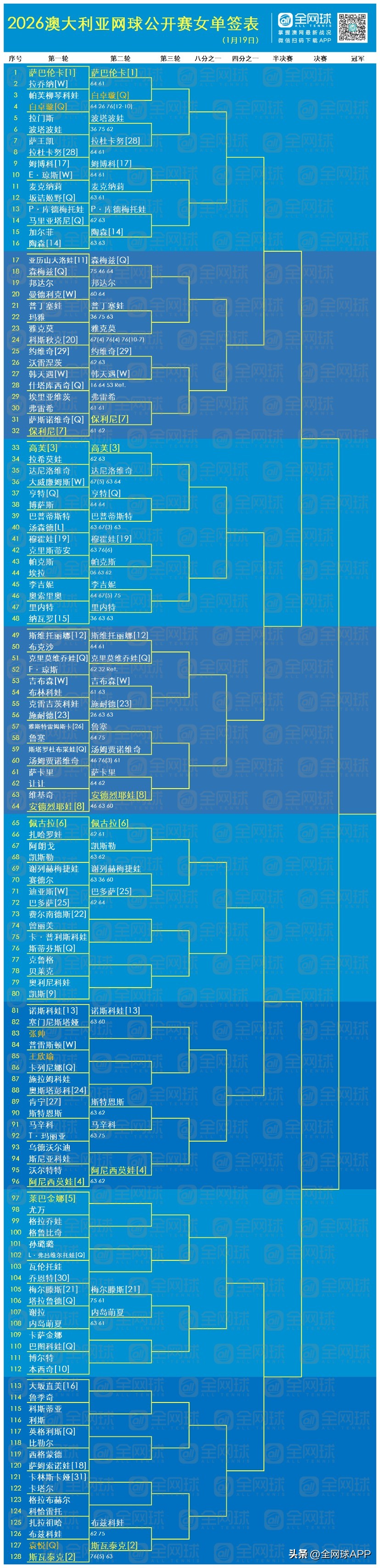 Complete Updated Chinese Draw for 2026 Australian Open Men’s and Women’s Singles