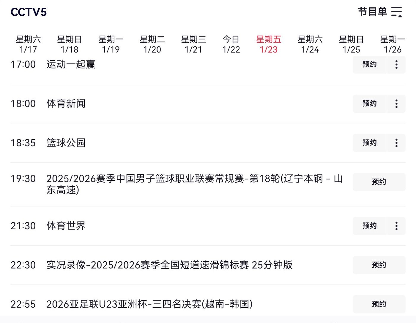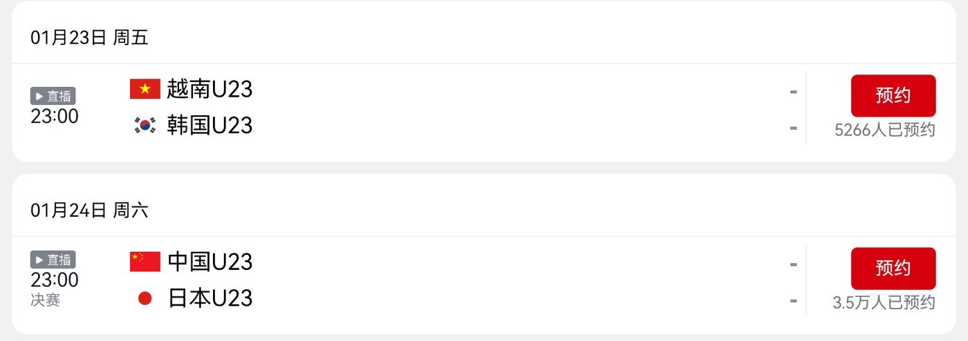 The U23 Men's Asian Cup bronze medal match tomorrow (2026.1.23) features Vietnam vs. South Korea, broadcast live on CCTV-5.