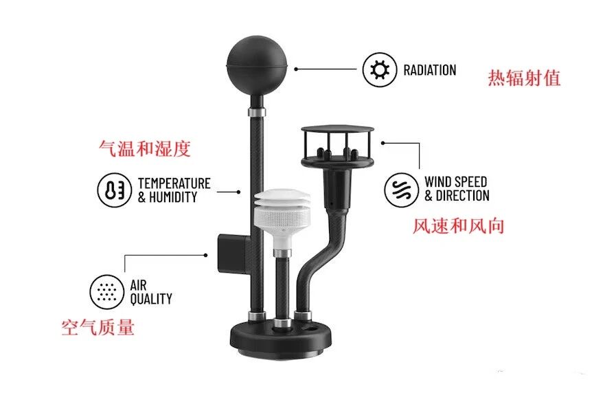 Depending on the device functions, these sensors gather real-time data including temperature, humidity, wind speed, heat radiation values, and air quality.