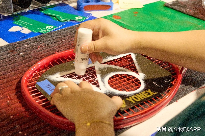 Once the racket arrives, stringers swiftly cut and remove the old strings. After clearing the old strings, the stringing process officially starts. The empty racket is securely mounted on the stringing machine, and the stringer sets the exact tension required. They begin with the mains: threading each string through the holes, clamping them, then using the machine to evenly pull to the specified tension, ensuring uniform force across all mains before tying knots by hand. After the mains, the more intricate crosses are woven manually, interlacing tightly between the taut mains. The final step is precisely applying the logo with a paint pen. When facing personalized requests from players, stringers skillfully arrange the layout to meet different brand display needs.