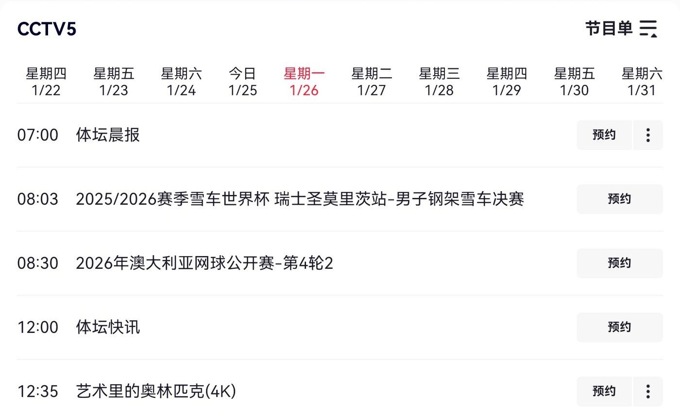 The detailed live broadcast schedule for CCTV-5 and Yangshipin is illustrated in the image below.