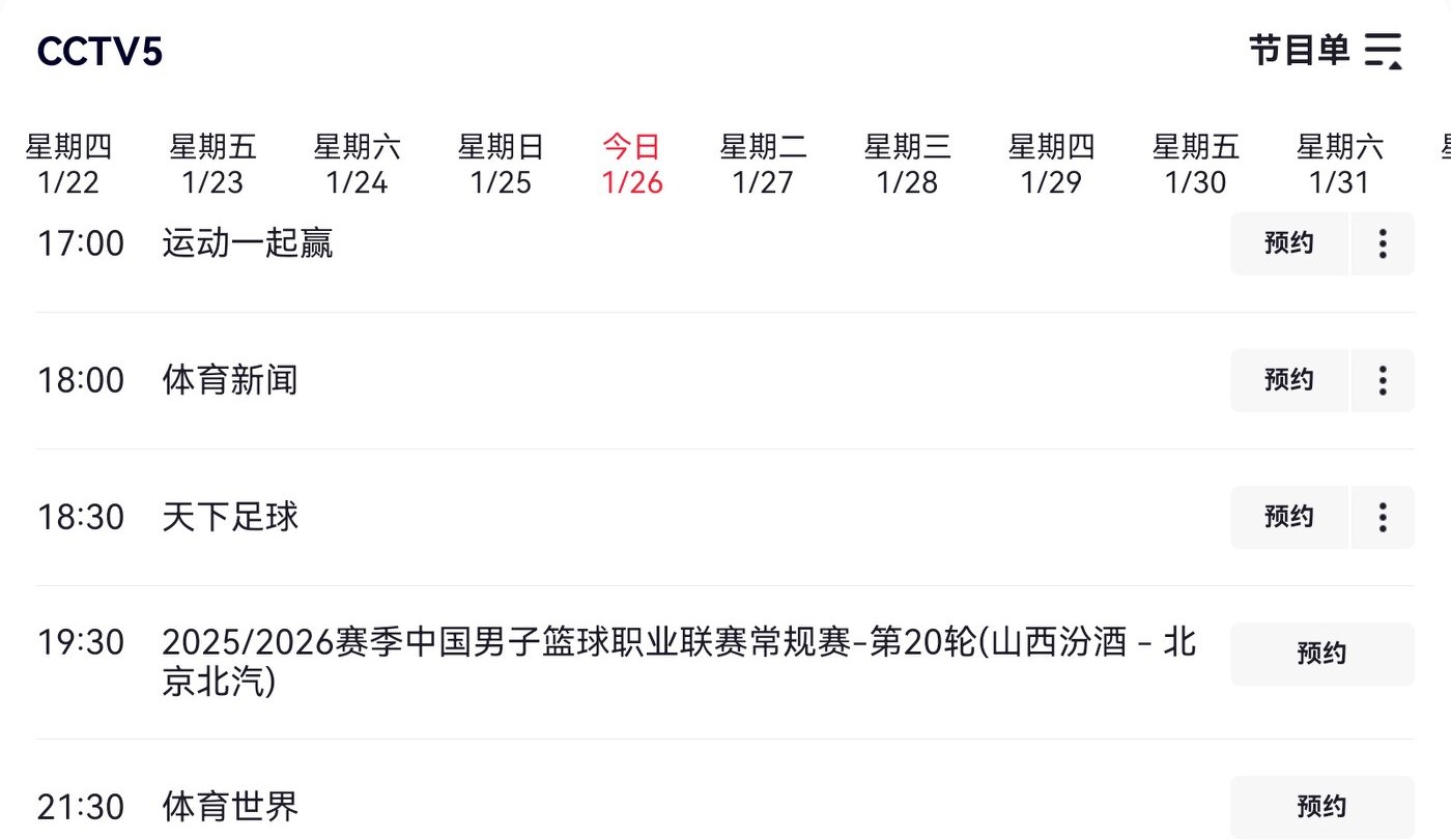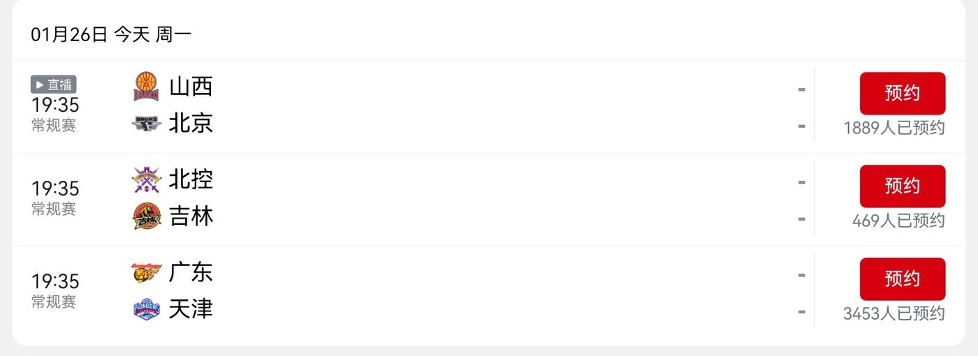 CBA schedule today (2026.1.26): Shanxi Fenjiu vs. Beijing Beiqi, live on CCTV-5.
