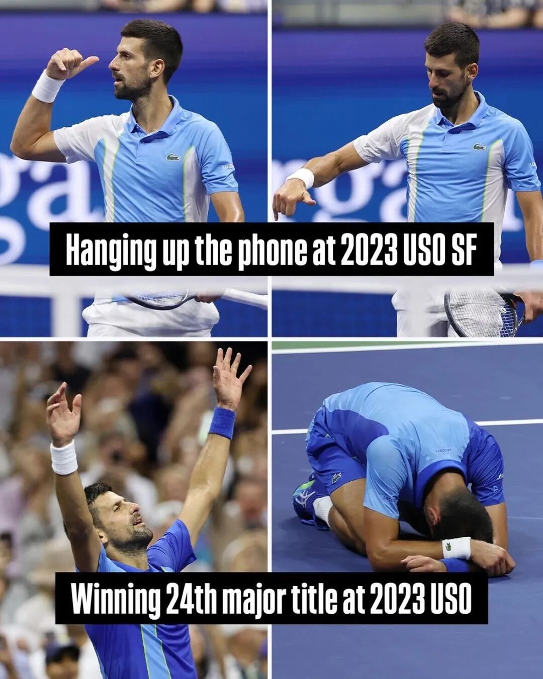 In the 2023 US Open semifinal, after defeating American rising star Shelton, Djokovic mimicked Shelton’s earlier “phone hang-up” celebration, provoking boos from the crowd and displeasure from Shelton. Previously, Shelton had celebrated beating Tiafoe with this gesture, seen as a provocation to the audience and opponents. Djokovic said afterward, “I just thought his celebration was original, so I ‘borrowed’ it.”