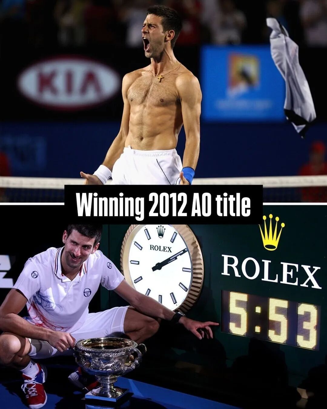 In the 2010 Wimbledon round of 16, Djokovic narrowly beat Hewitt 7-5, 6-4, 3-6, 6-4 and tore his shirt again at age 23. In the 2012 Australian Open final, Djokovic triumphed over Nadal in five sets after 5 hours and 53 minutes—the longest Grand Slam final ever—passionately tearing his shirt afterward to release the immense physical and mental pressure.