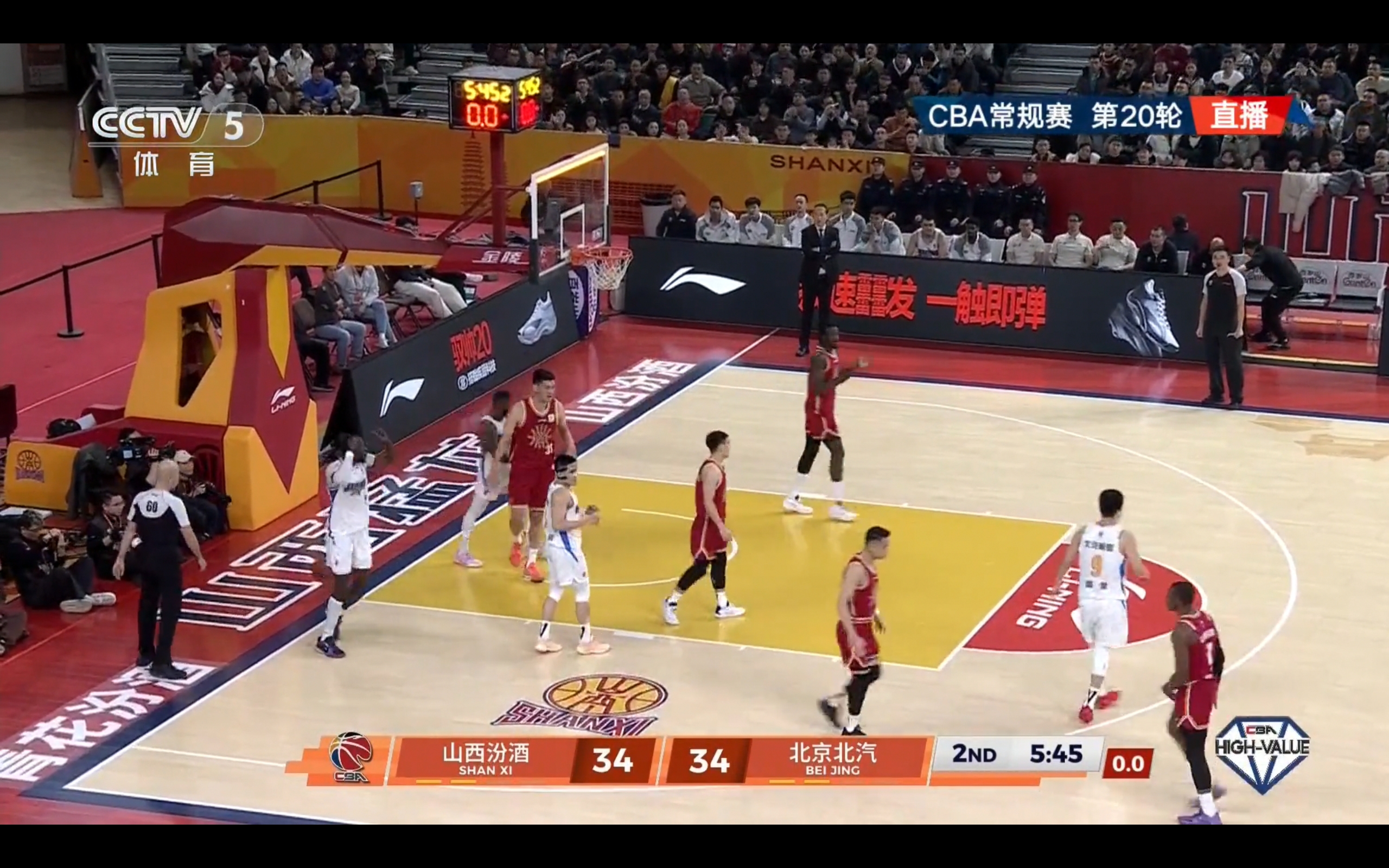 CCTV-5 and Yangshipin are currently airing the 20th round CBA match between Shanxi Fenjiu and Beijing Beiqi.