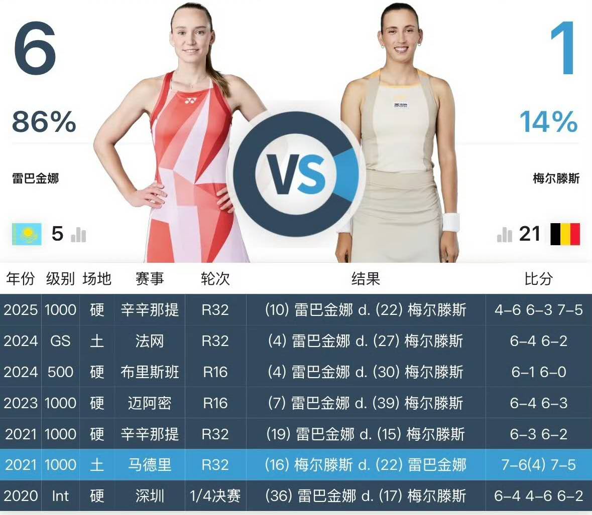 Looking at their head-to-head record: the two players have met seven times before, with Rybarikova holding a dominant 6-1 lead. Their most recent encounter was at the 2025 Cincinnati tournament, where Rybarikova won a tough three-set battle 2-1.
