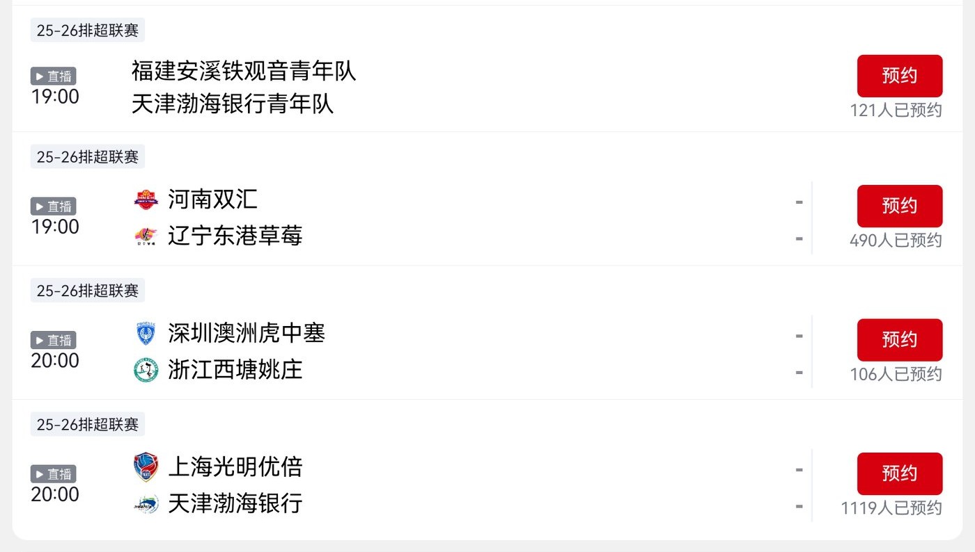At 8 PM tonight, Shanghai women's volleyball team will compete with Tianjin women's volleyball team.