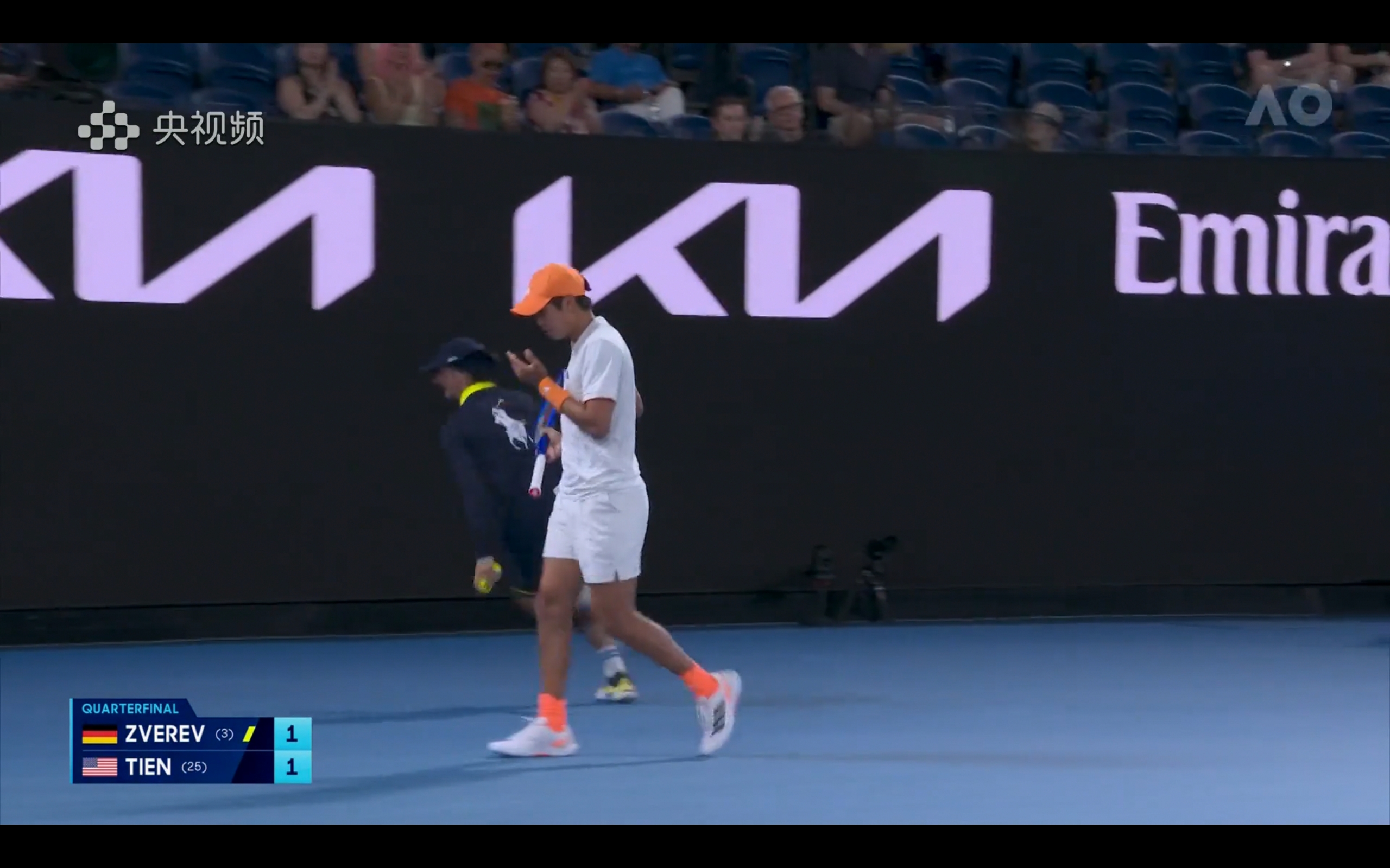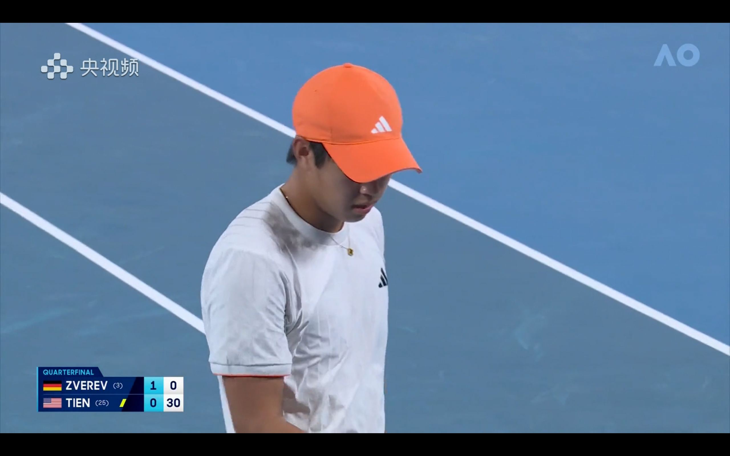 Yangshipin is offering free live streaming of the Australian Open men's singles quarterfinal between Zverev and Linner Chien.