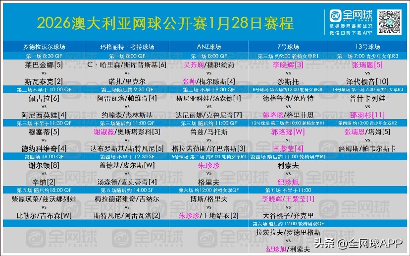 The schedule for the 11th day of the 2026 Australian Open has been announced, featuring ongoing fights for semifinal places in the lower halves of the men’s and women’s singles draws. This tournament is notable as the first Grand Slam in the Open Era to have the top six seeds from both genders all advancing to the quarterfinals, underscoring the event’s prestige.