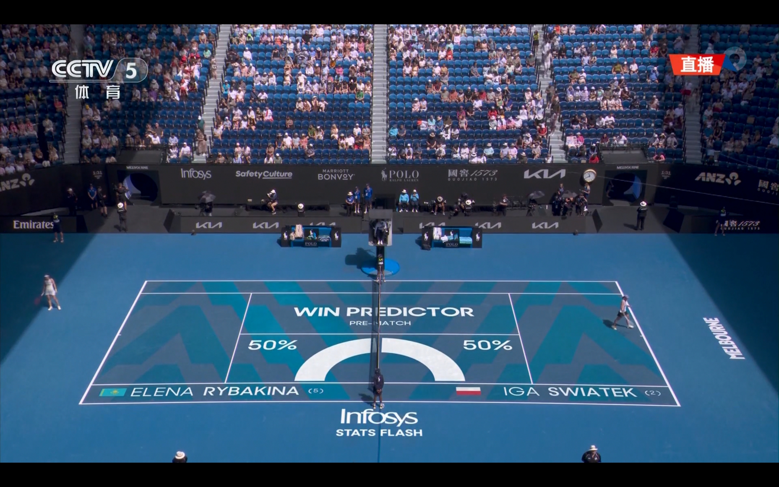 CCTV-5 and Yangshipin are providing free live coverage of the Australian Open Women's Singles Quarterfinals featuring Swiatek versus Rybakina, along with today's schedule.