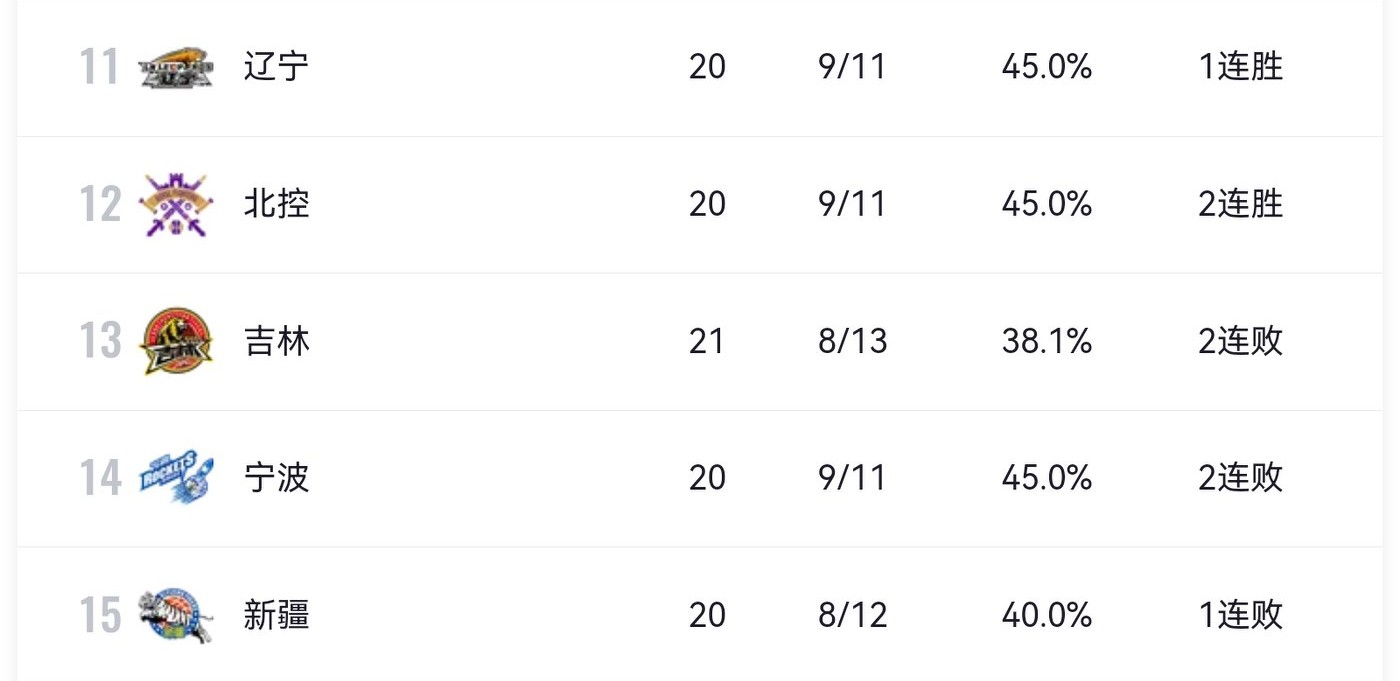 Ningbo Men's Basketball Team currently stands at 9 wins and 11 losses, ranked 14th in the league, and has suffered two consecutive defeats.