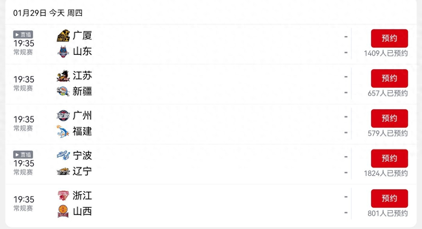 CBA schedule for today (2026.1.29): Ningbo Men's Basketball Team versus Liaoning Men's Basketball Team, live on CCTV-5 and Yangshipin.