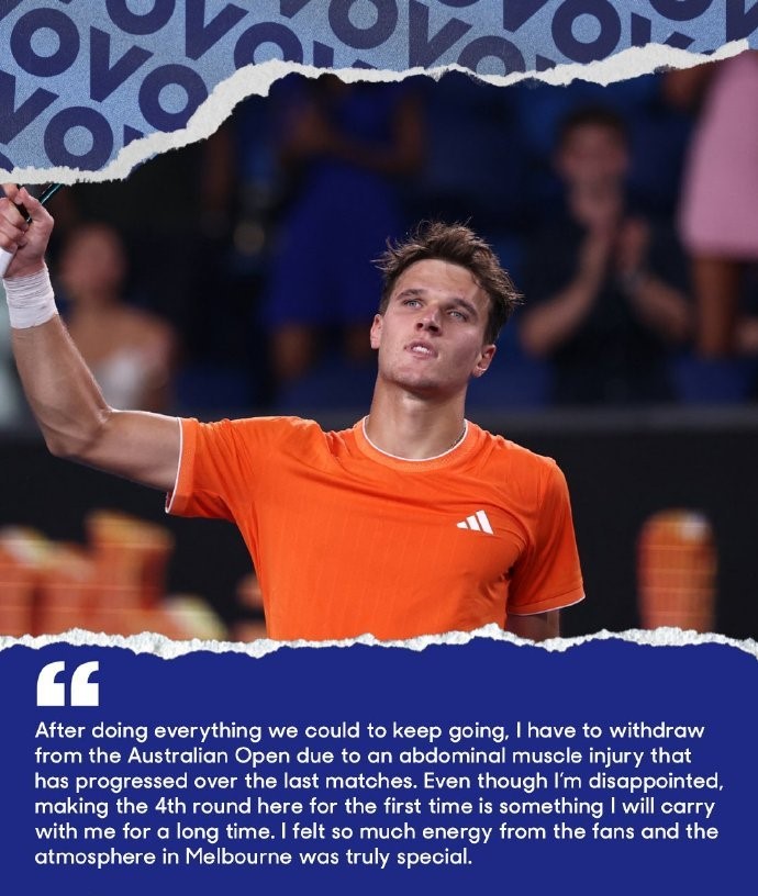 The dramatic scenes at the 2026 Australian Open sparked widespread discussion in the tennis world. After winning three consecutive matches to reach the fourth round, Djokovic advanced through two successive rounds due to his opponents’ withdrawals. Czech rising star Menšík pulled out before the match due to an abdominal muscle tear as assessed by the medical team, followed by Italian player Musetti, who retired with a right leg injury despite leading Djokovic by two sets.