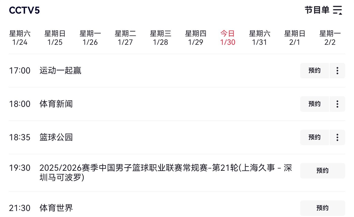 CBA Round 21 today (2026.1.30) schedule: Shanghai Jiushi VS Shenzhen Marco Polo, live on CCTV-5.