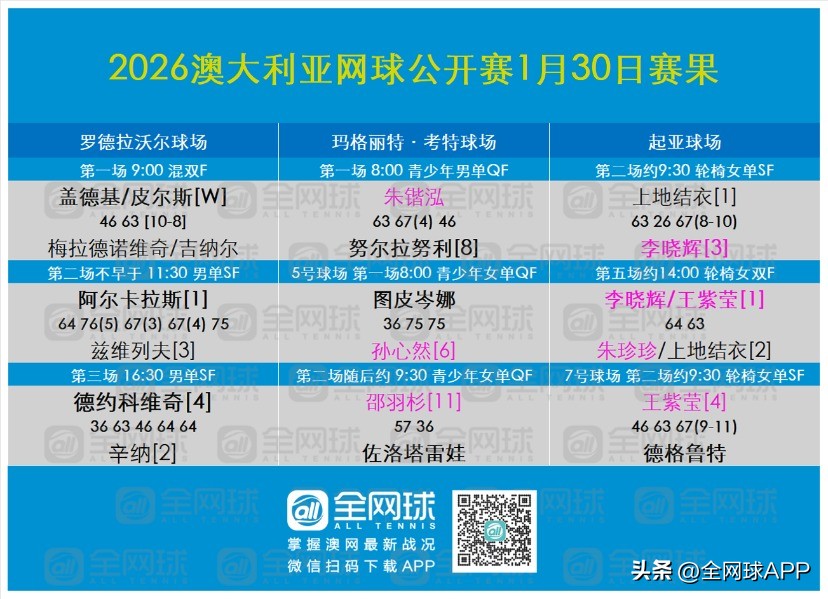 On January 30, 2026, the 13th day of the Australian Open unfolded. In the second men's singles semifinal, ten-time champion Djokovic battled through five sets to overcome two-time defending champion Sinner 3-6/6-3/4-6/6-4/6-4, reaching the Australian Open men's final for the first time in three years.