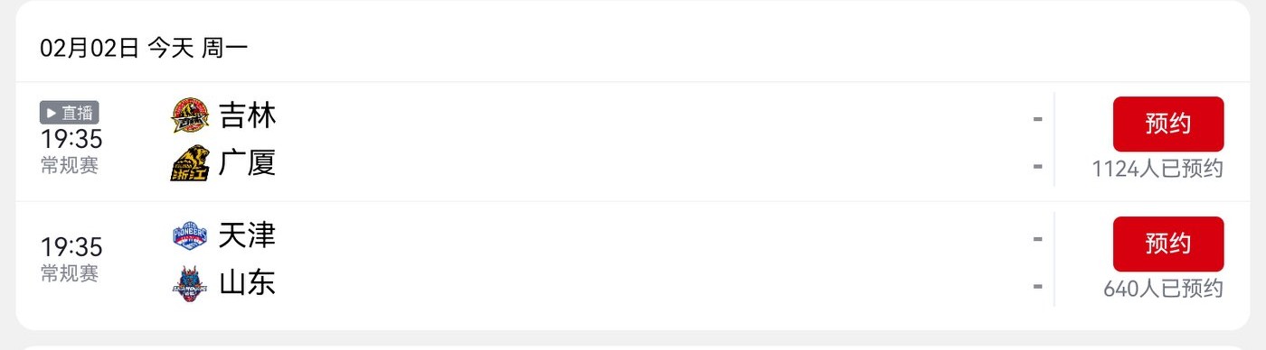 Based on the schedule announced by the organizing committee, two CBA matches are planned for today; details are shown in the image below.