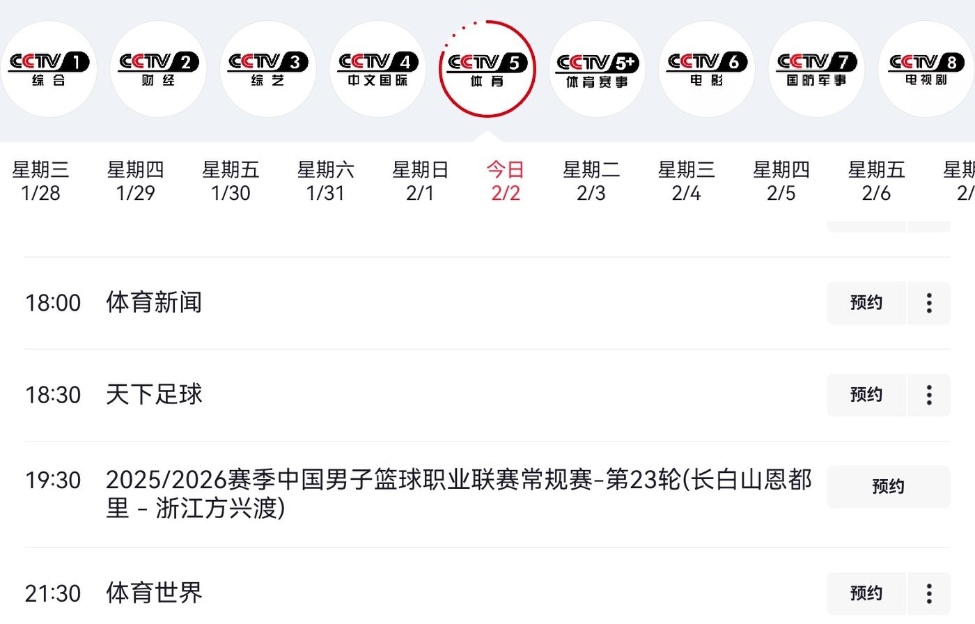 CBA schedule for today (2026.2.2): Zhejiang Fangxingdu versus Jilin Changbaishan, live on CCTV-5.