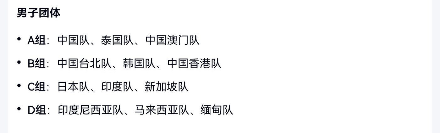 The men's team group draw is shown below, placing China, Macau, and Thailand in the same group.