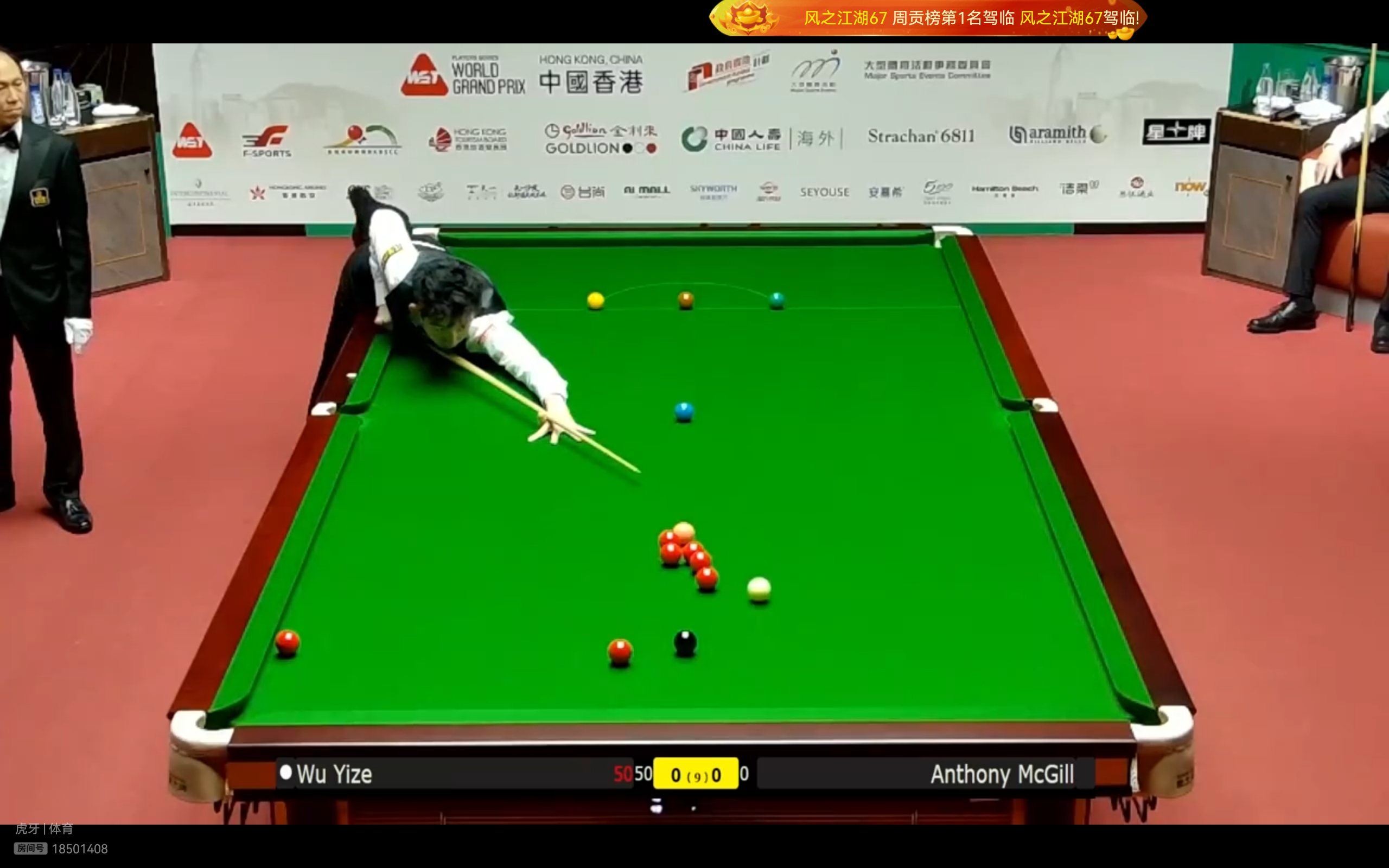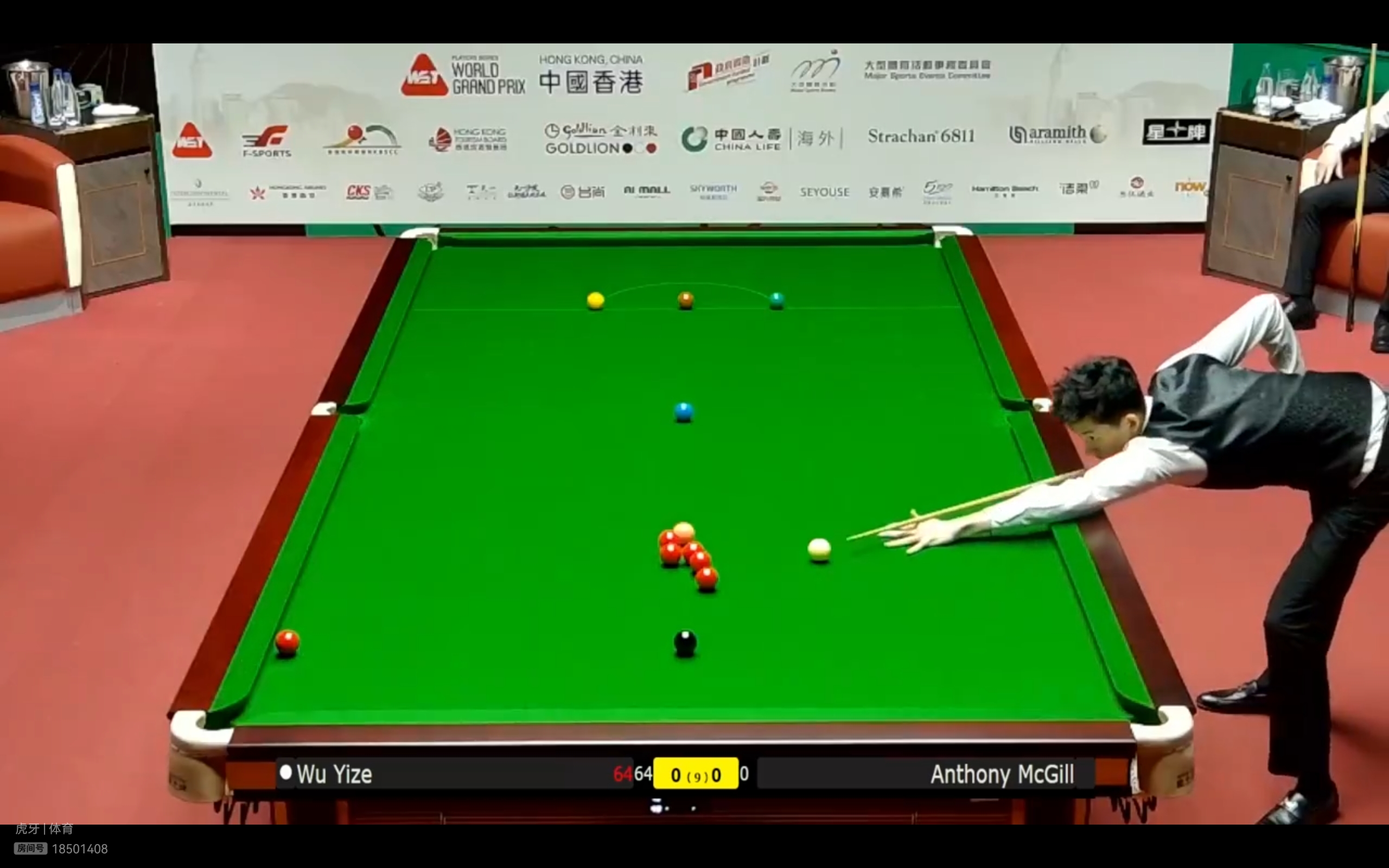 Migu Video and Huya Live platforms are currently streaming the Snooker World Grand Prix match between Wu Yize and McGill.