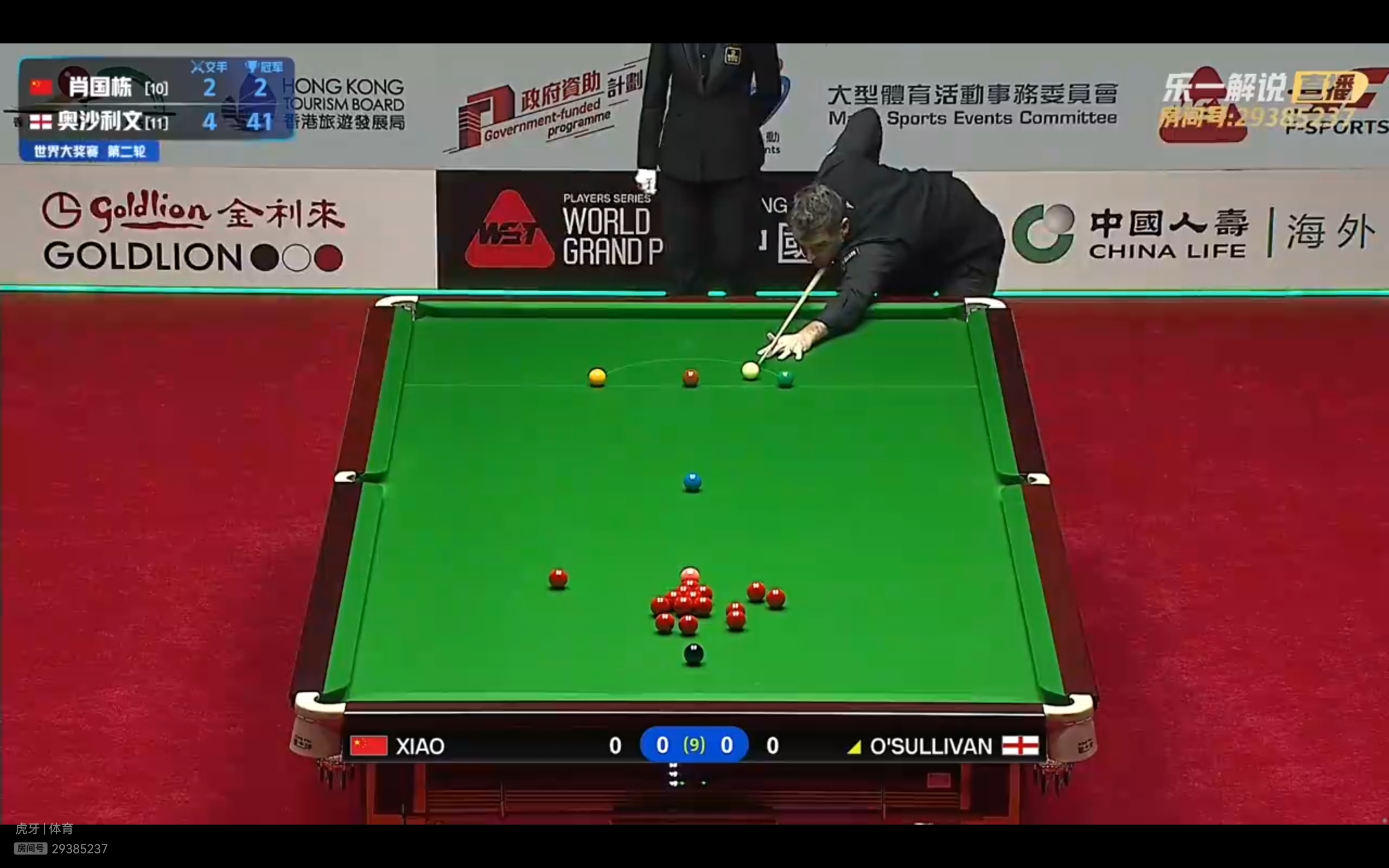 Migu Video and Huya streaming platforms are live streaming the Snooker World Grand Prix Round of 16 clash between Xiao Guodong and O'Sullivan.