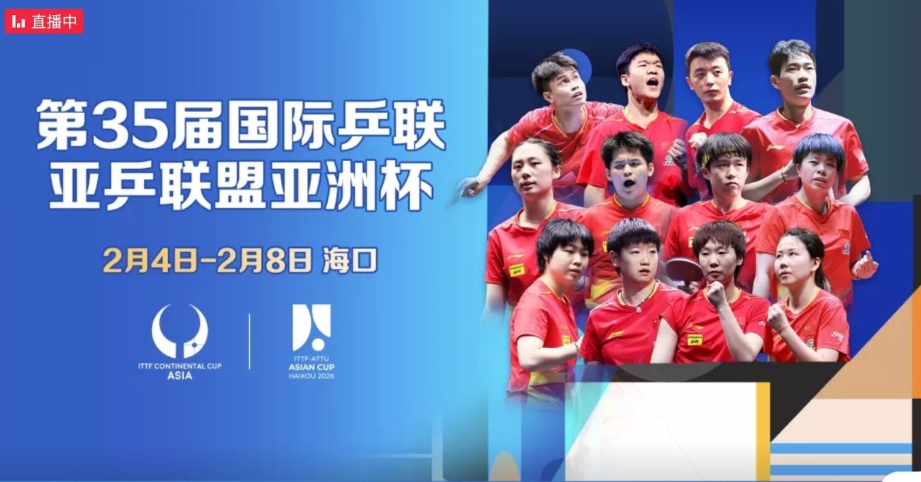 CCTV-5 has announced the live broadcast schedule for the Table Tennis Asia Cup tomorrow (2.6), featuring Wang Manyu, Wang Chuqin, and Sun Yingsha.