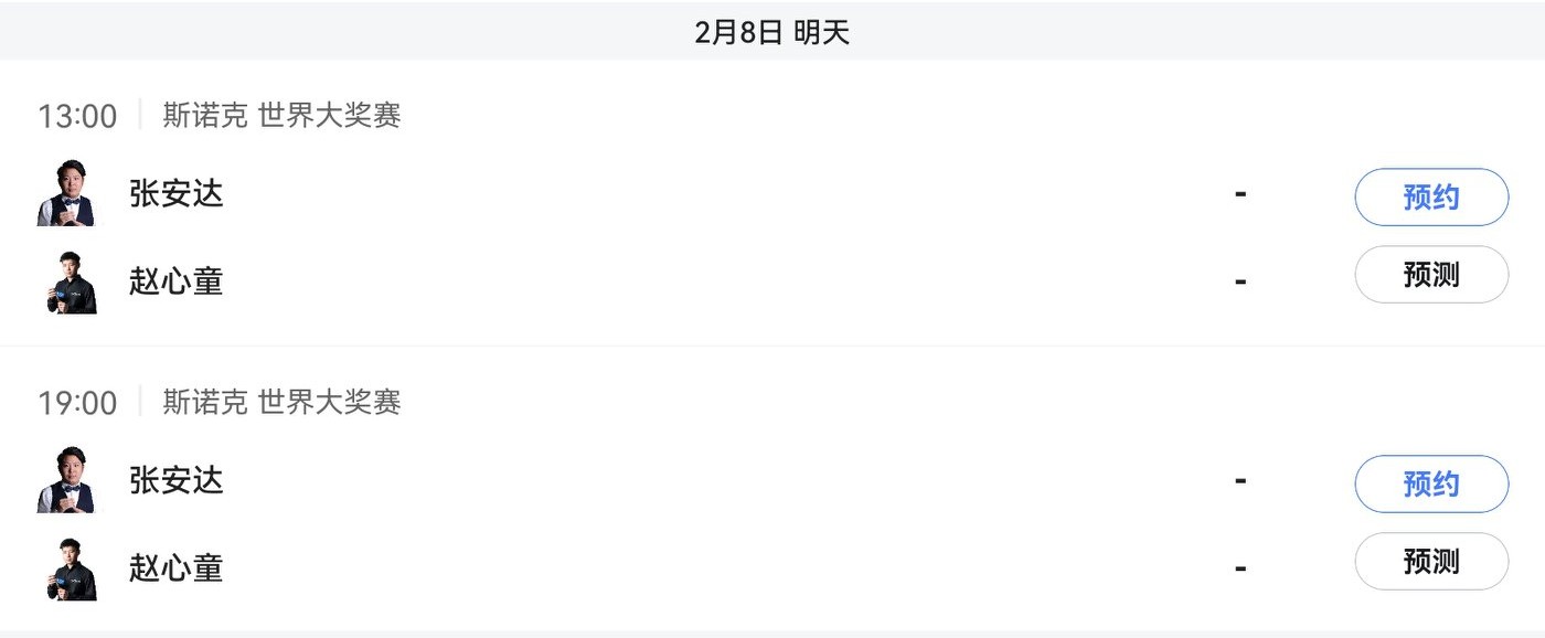 The Snooker World Grand Prix final is scheduled for tomorrow (2026.2.8), with Zhao Xintong playing Zhang Anda, available on Migu Video and Huya Live.