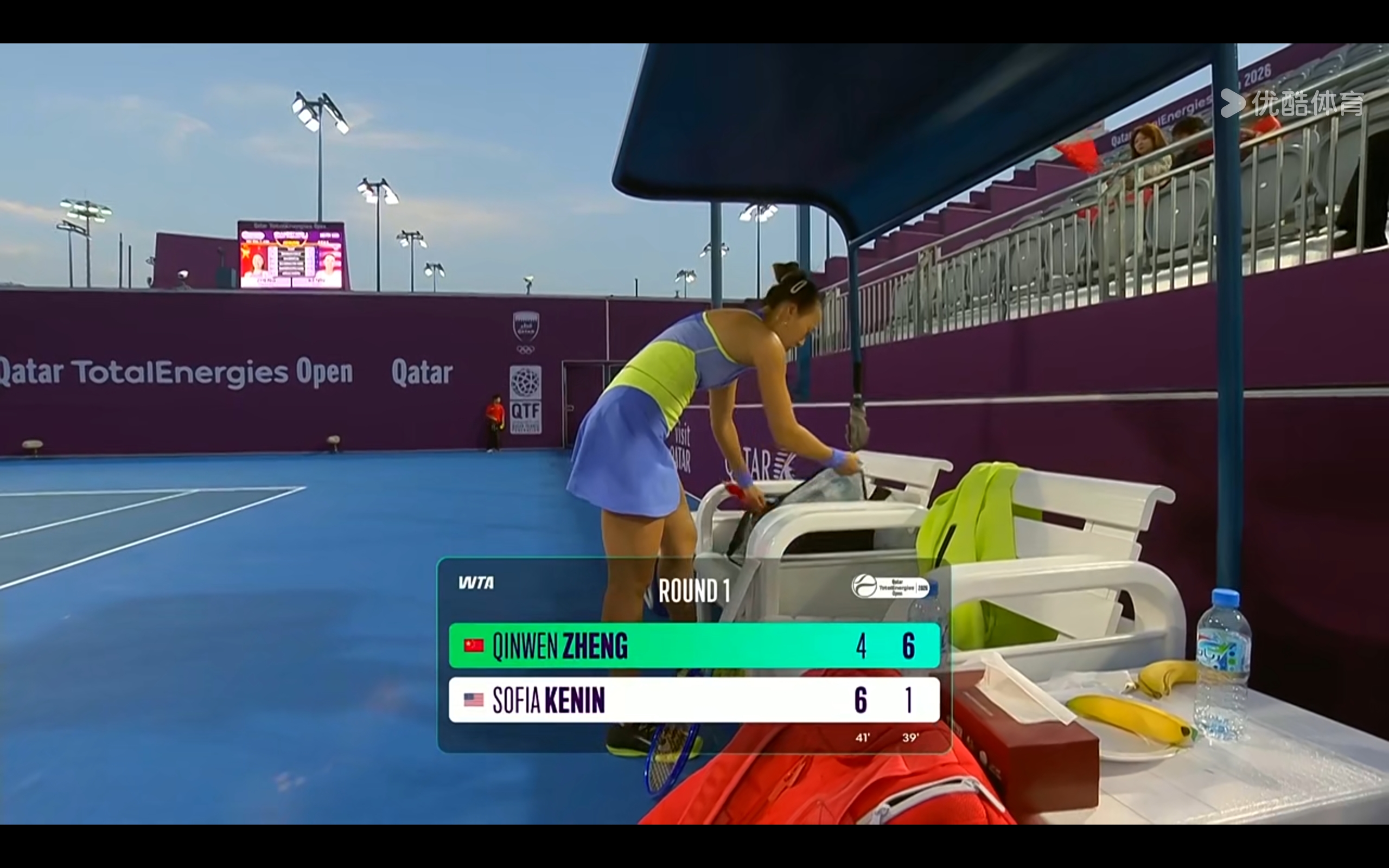 Latest news from WTA1000 Doha: Zheng Qinwen has evened the match at 1-1, with the deciding set imminent.