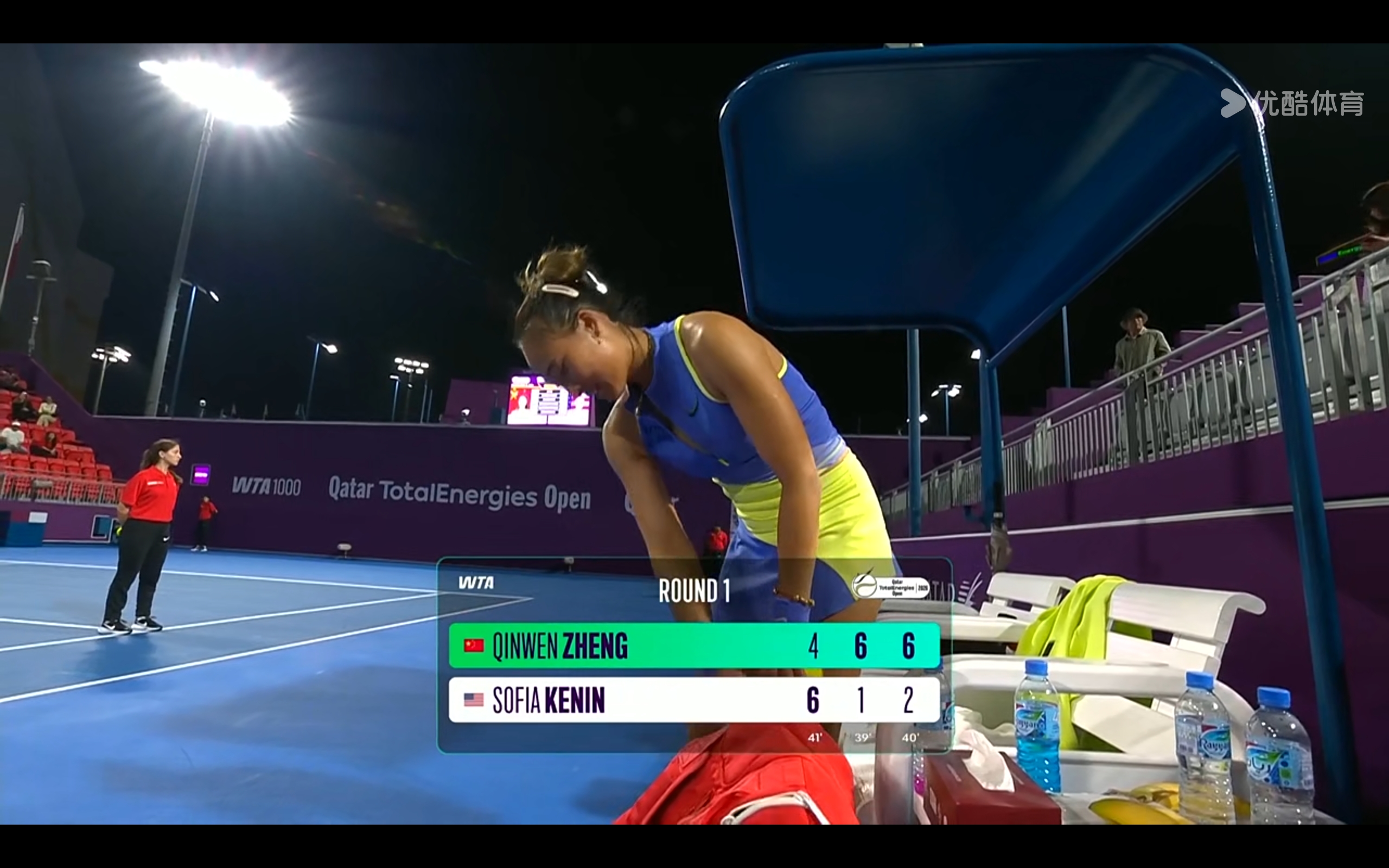In the third set, Zheng broke serve again and maintained pressure, forcing Kenin to retreat under her towel.