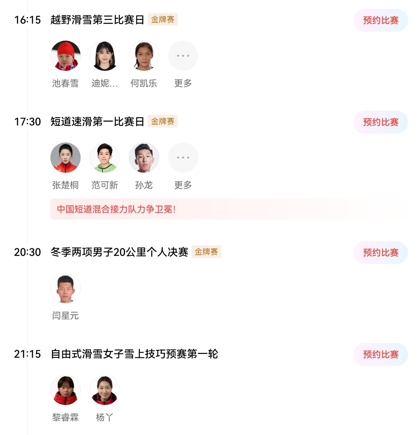 Today, the Chinese team will participate mainly in the following four events, as detailed in the chart below.