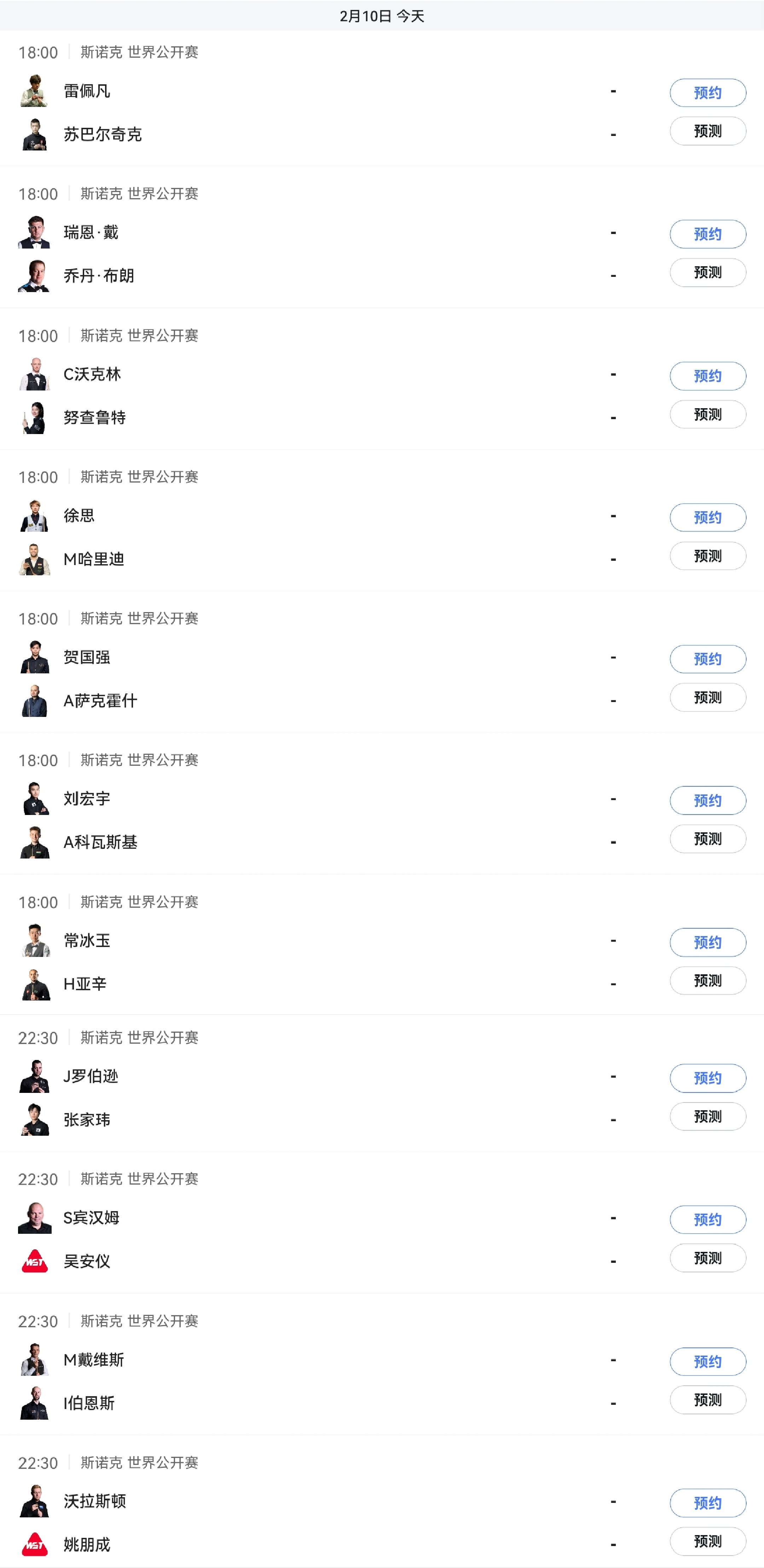 Snooker World Open schedule for today (2026.2.10): Lei Peifan, Chang Bingyu, Xu Si and others competing, live on Huya.