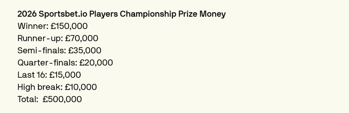 - There is a £10,000 prize for the highest break in a single frame.