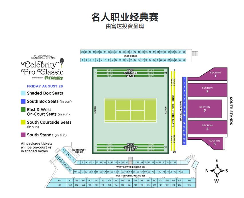 Seating chart for the Hall of Fame Champions Classic featuring Federer