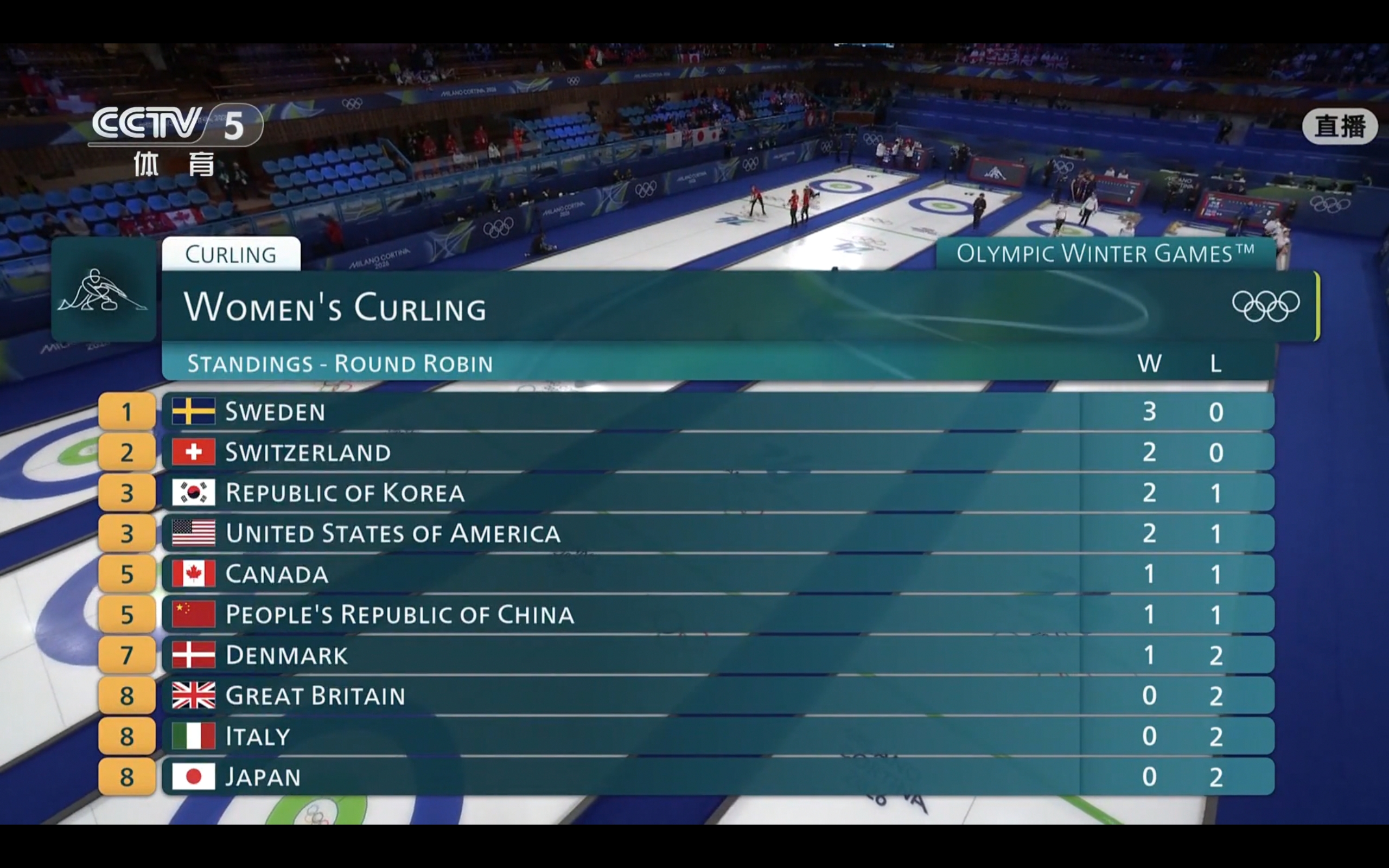 CCTV-5 and Yangshipin are providing free live coverage of the Milan Winter Olympics women's curling round-robin match between China and Italy.