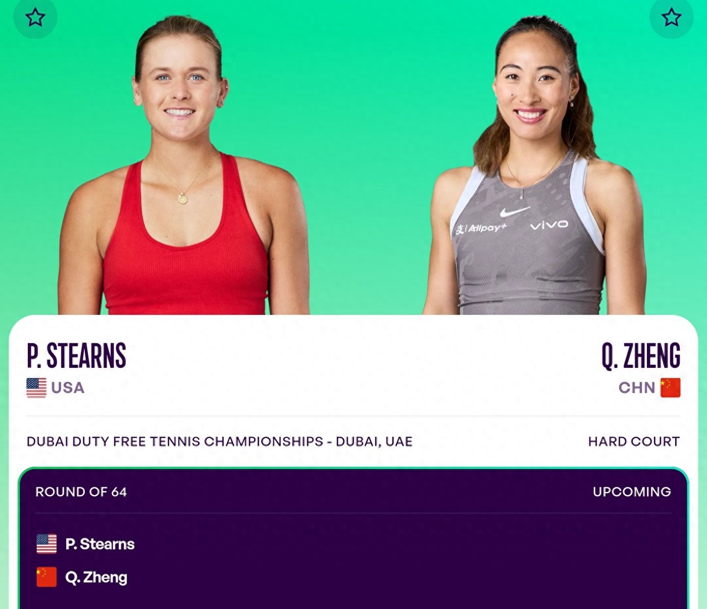 Their head-to-head record shows Zheng Qinwen 0-1 Stearns, with Stearns eliminating Zheng in the first round at last year's Dubai event.