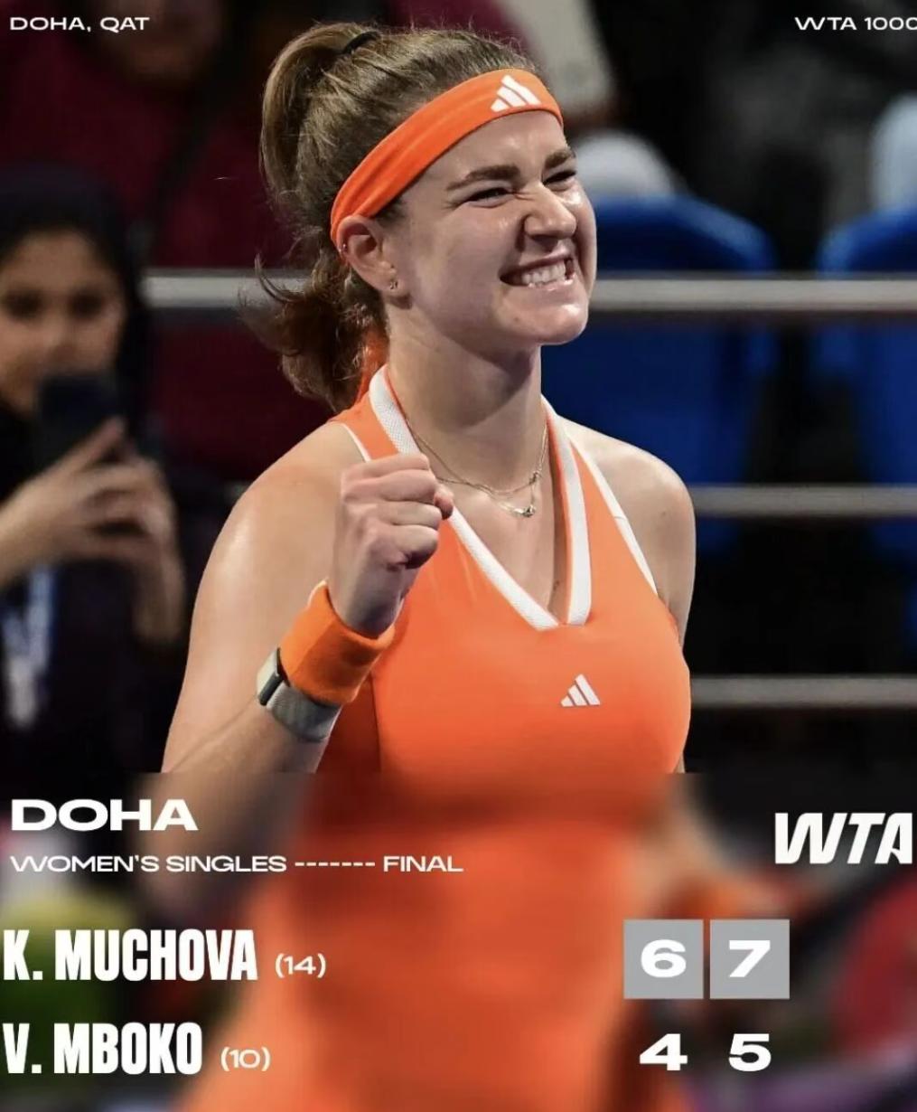 The Czech player had previously reached two 1000-level finals in Cincinnati and the China Open but left empty-handed both times, losing to the same opponent: Gauff. This time, she finally seized the opportunity in Doha, winning her first 1000-level title and creating a new personal milestone.