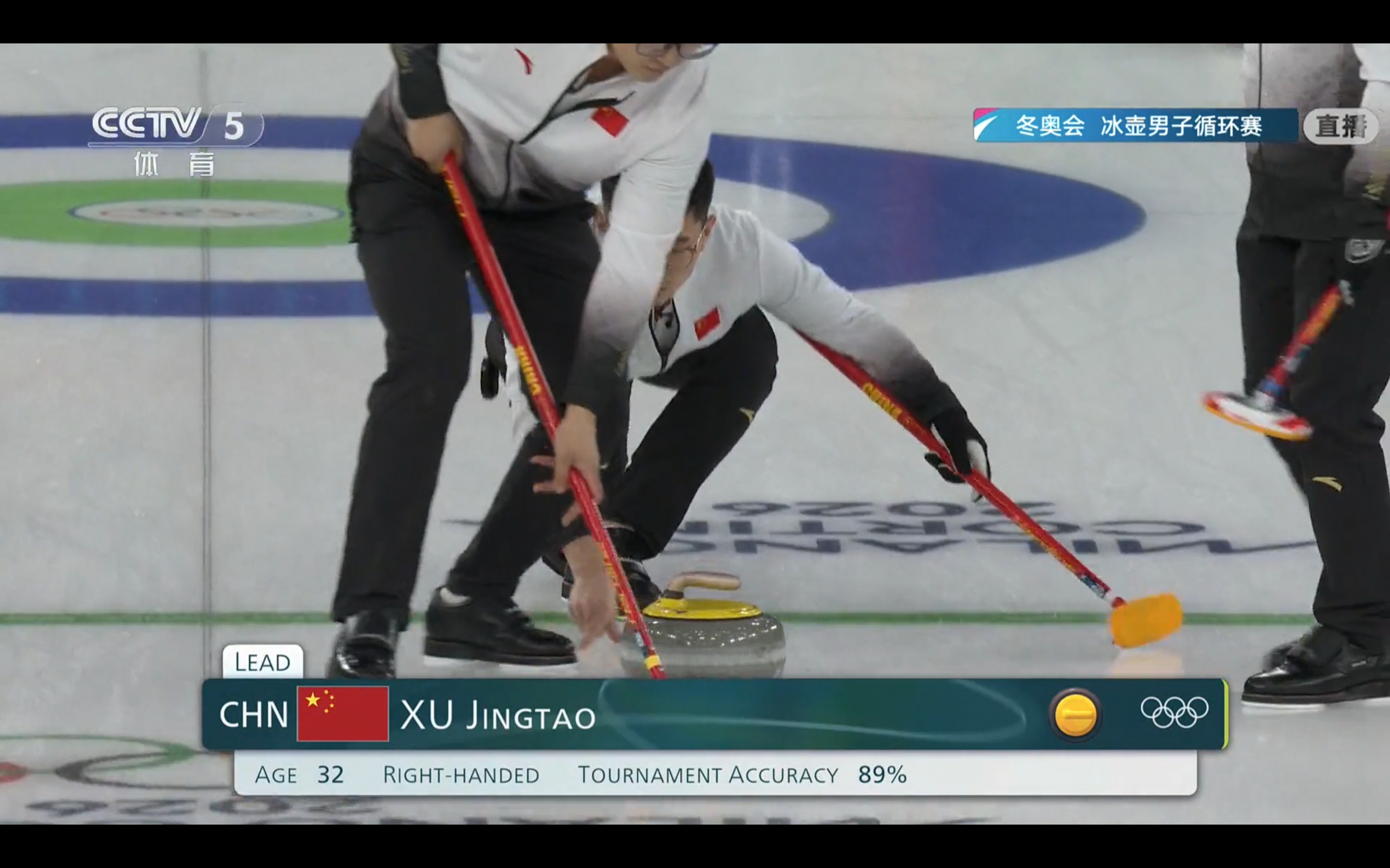 CCTV-5 is broadcasting the men's curling round-robin match between China and the USA at the Milan Winter Olympics.