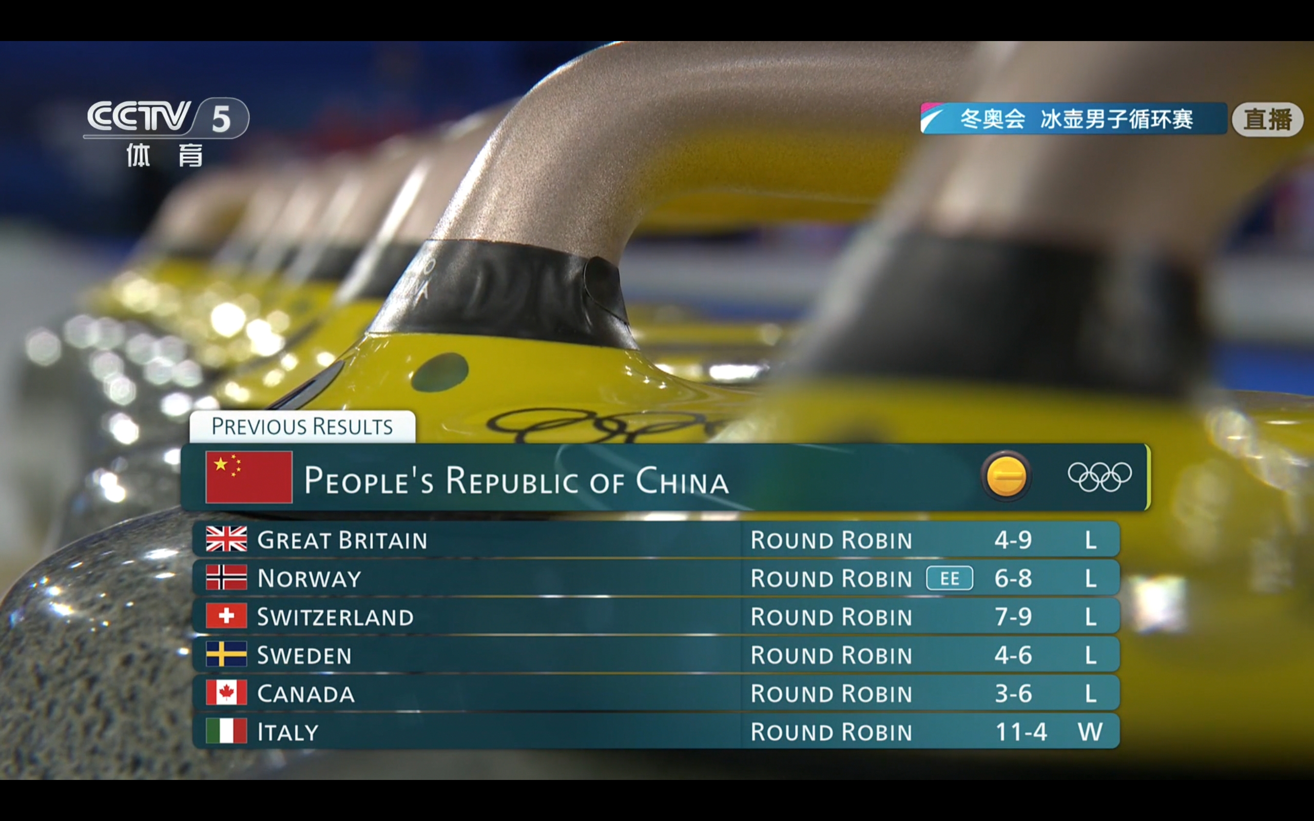 The men's curling round-robin consists of 9 matches in total; we have finished six, and today is the seventh match. It is certain that we will not qualify for the top four and have no chance at a medal.