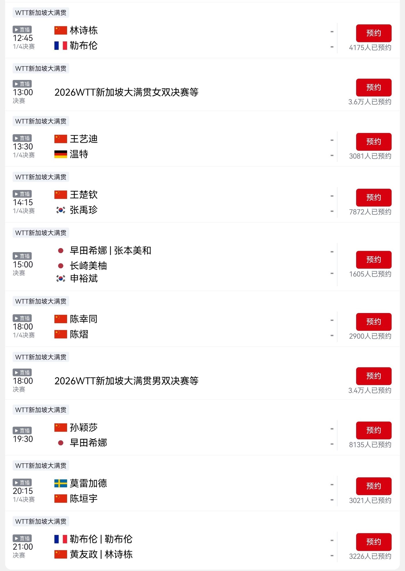 Attached is today's schedule (2026.2.28). CCTV-5 and CCTV-5+ will provide free live coverage of all matches featuring Chinese national table tennis players today. Everyone is welcome to tune in.