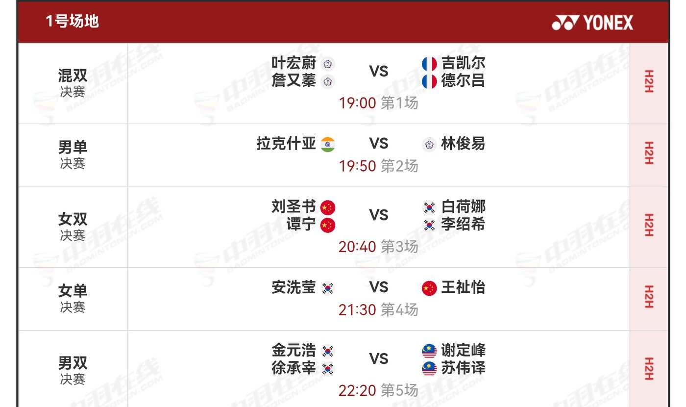 Today is the finals day of the All England Open, with finals in five individual events. The Chinese team will participate in two finals, aiming for one gold medal and striving for two.