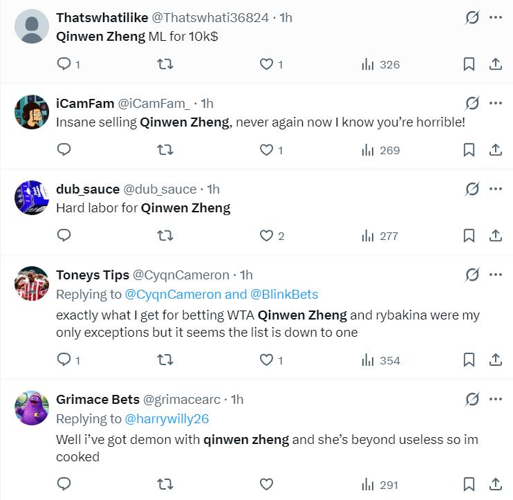 After attributing her loss to "not being fully in form, racket tension issues affecting her serve, and poor serving performance," many expressed sympathy, noting that despite these problems, Zheng still battled Ružić to that extent, and avoiding a quick defeat was already a consolation.