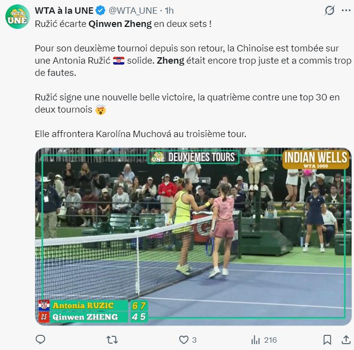 Now it's understood that all this stemmed from Zheng not being fully in a competitive mindset. Otherwise, her ability to handle crucial points wouldn't have been so poor, and Ružić wouldn't have won in two sets so easily—the match likely would have stretched to three sets.
