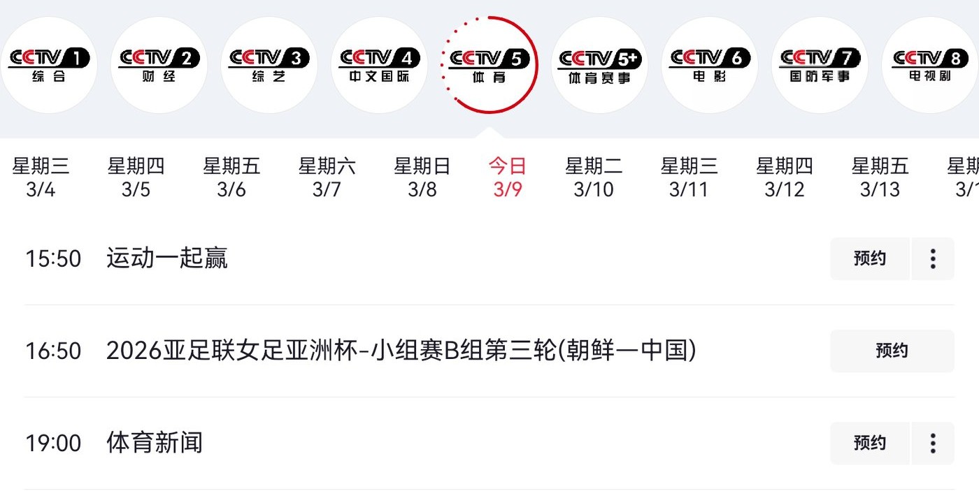 Women's Asian Cup schedule today (March 9, 2026): China vs North Korea, live on CCTV-5.