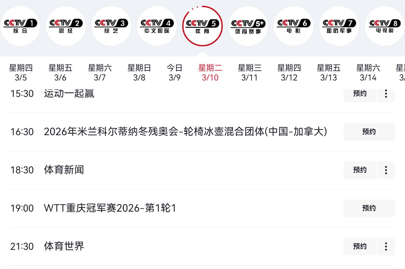 WTT Chongqing Champions Tournament schedule tomorrow (2026.3.10): Wang Manyu, Kuai Man, and others compete, live on CCTV Channel 5 and Migu Video.