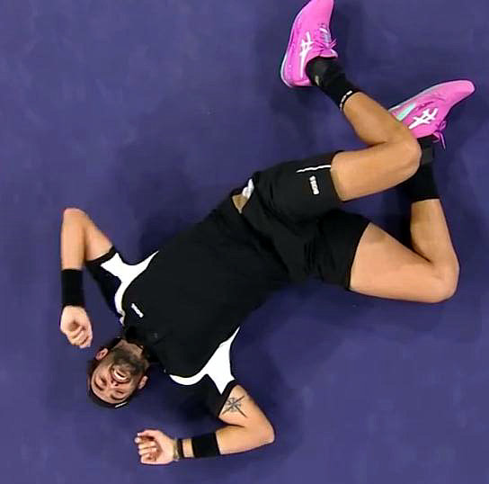 Finally, a guess and recognition game. The image below shows a player covering her face in celebration after a match. Without hints, can you recognize who she is?