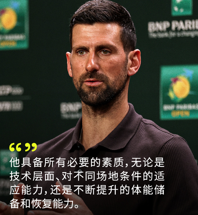 After winning his IW debut in a three-set comeback, Serbian tennis king Novak Djokovic attended the post-match press conference. When asked by a reporter whether he believes Carlos Alcaraz can break his record for the best season start in history set in 2011, Djokovic stated, "He can do it. I mean he possesses all the necessary conditions, including his technique, adaptability to different surfaces, and the physical fitness and recovery ability he has demonstrated over the years which is becoming more mature." "If he can stay healthy, he can win any tournament he enters, so who knows? After all, at such a young age, he has already created some historic achievements for our sport."