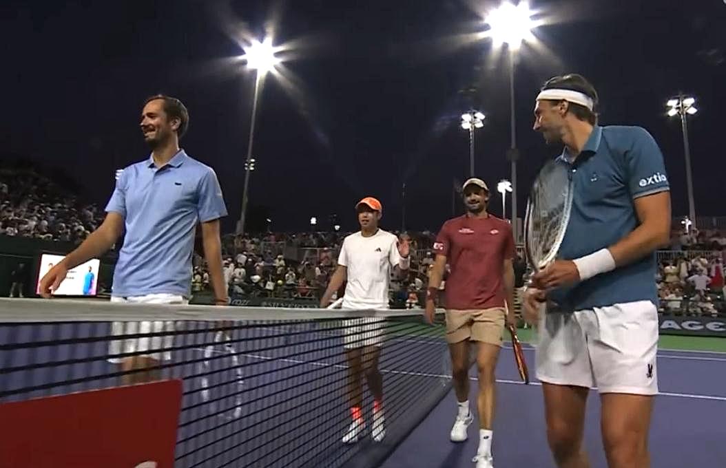 Doubles court: In a key first-round match, the newly paired "Med-Chang duo" Daniil Medvedev/Lenna-Chang had an unfortunate start, defeated by the cousin duo Lindner/Vasello 7-5, 6-3, exiting in their debut.