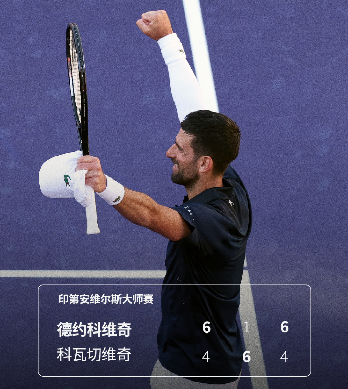 This morning Beijing time, the ATP1000 Indian Wells Masters continued with singles third-round matches. In a key match concluded early morning, the third seed and five-time tournament champion Novak Djokovic unexpectedly suffered a 'bagel' in the second set but ultimately defeated local rising star Kovacevic 6-4, 1-6, 6-4, maintaining a perfect two-match record against him and advancing to the round of 16 after eight years.