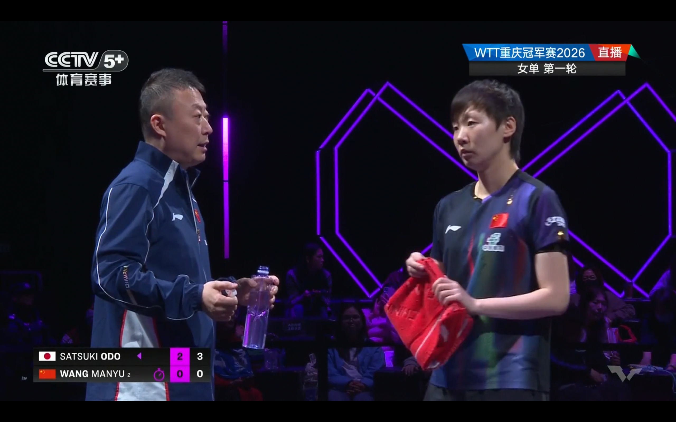 The biggest upset today was Wang Manyu's defeat; she was completely overwhelmed by Otomo Satsuki, losing quickly 0-3. Even calling a timeout proved ineffective.