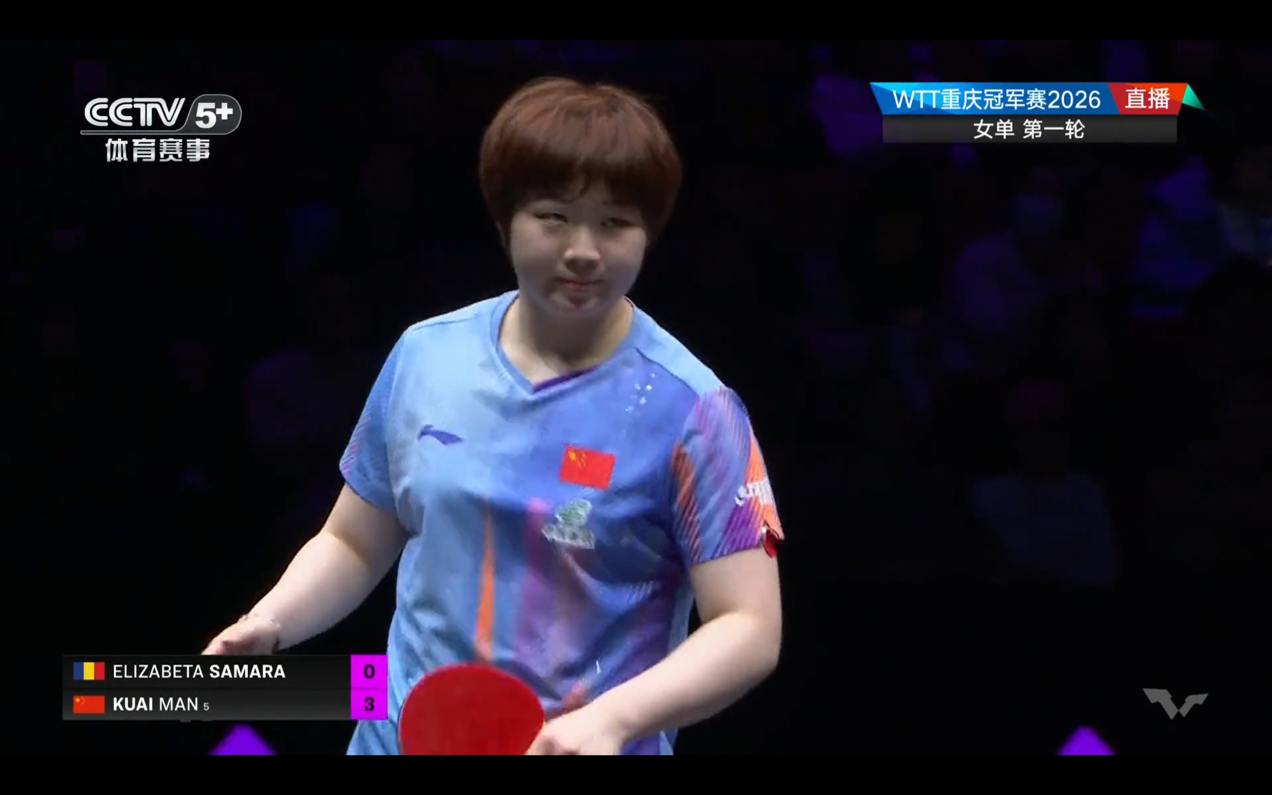 The first match featured Kuai Man, who comfortably beat Samara 3-0, advancing to the women's singles quarterfinals.